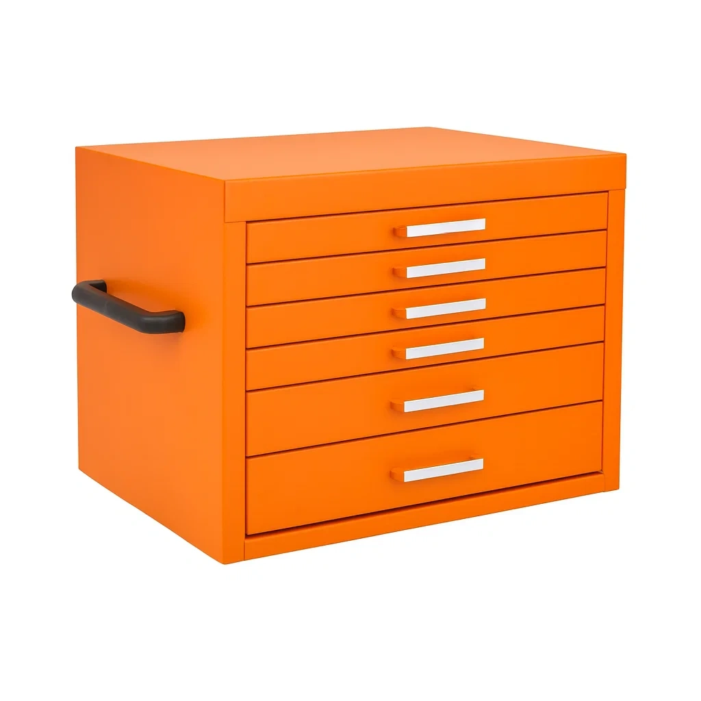 Cassetta degli attrezzi in metallo arancione con 6 cassetti