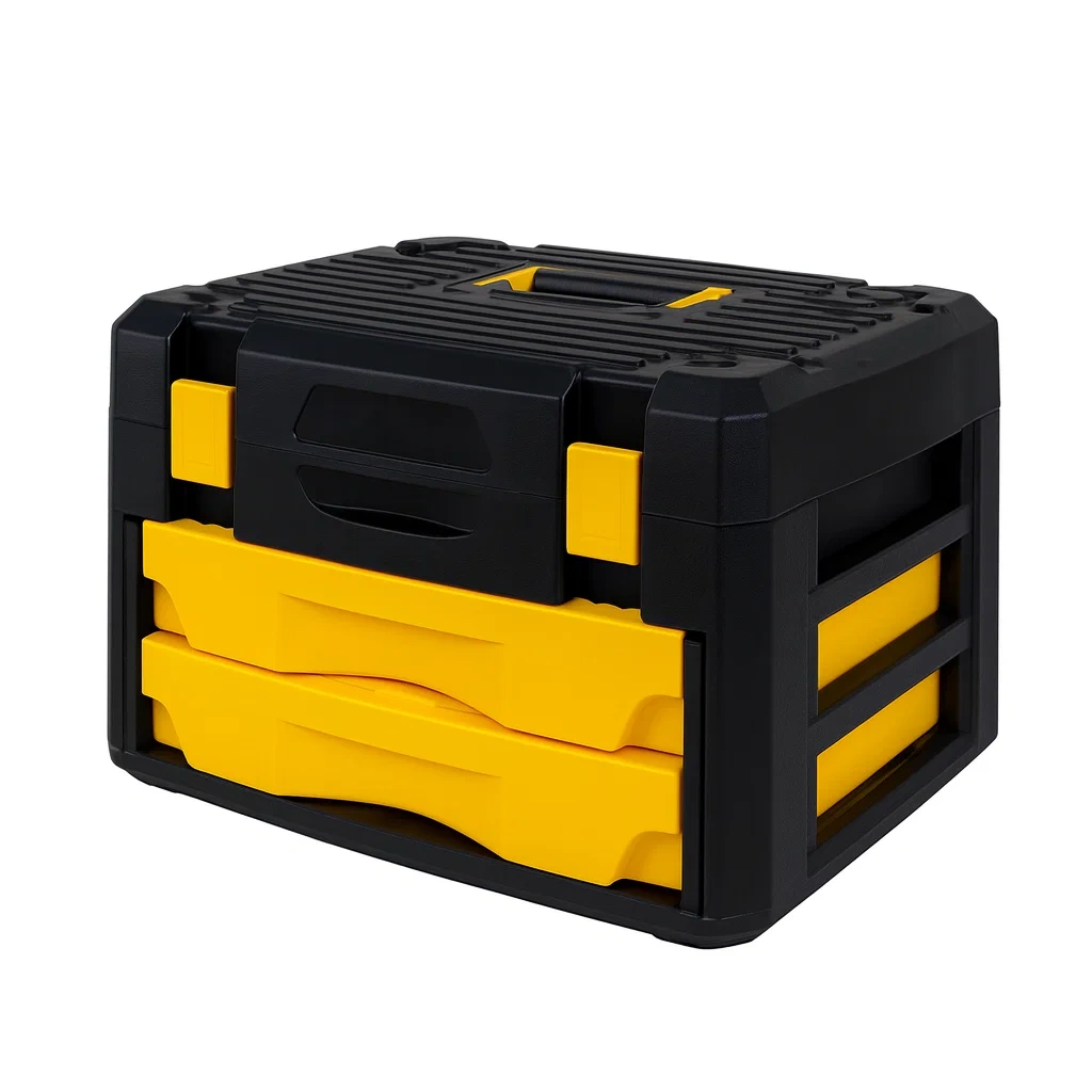 Cassetta degli attrezzi in plastica con cassetti nero e giallo