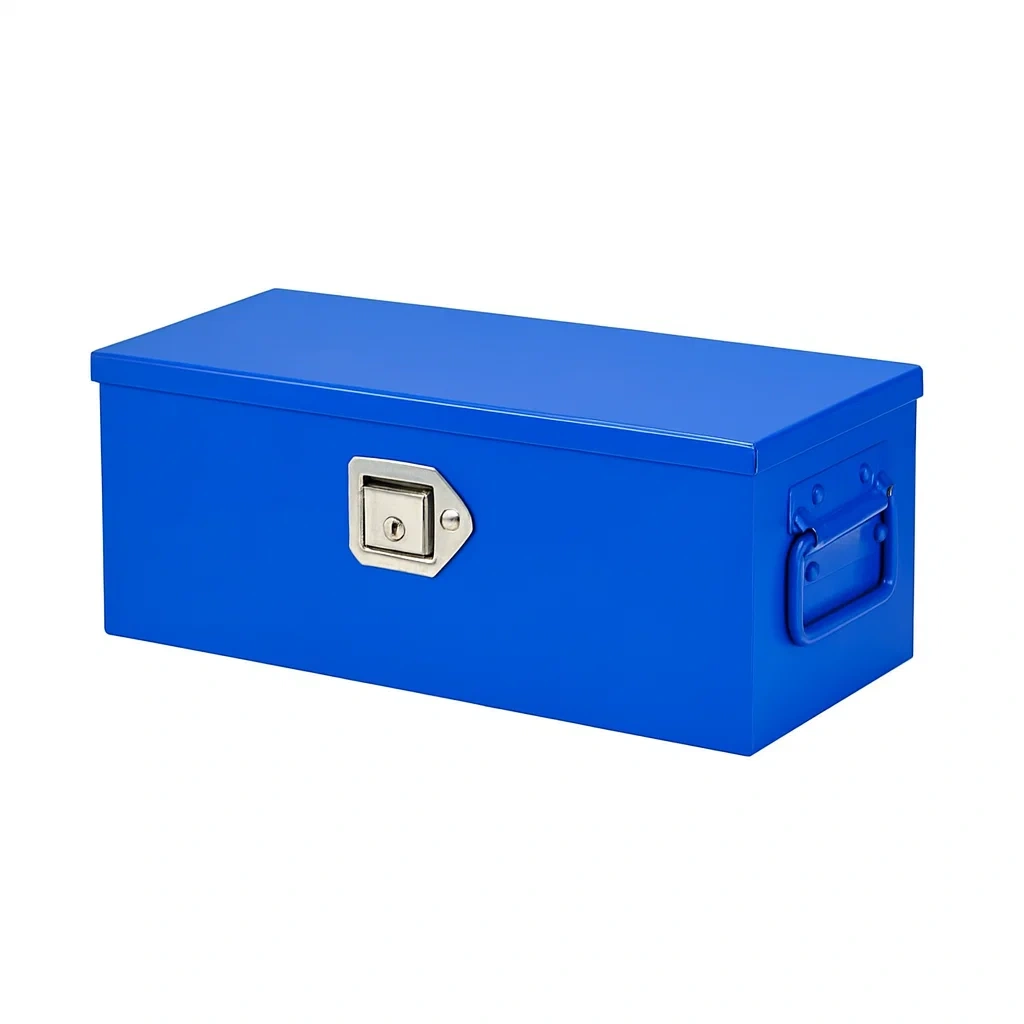 Cassetta degli attrezzi in metallo blu con chiusura e maniglia 30 cm