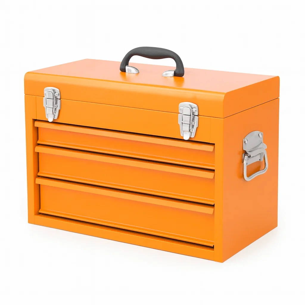 Cassetta degli attrezzi in metallo con 3 cassetti arancione