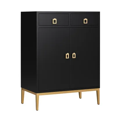 Armadio contenitore in MDF nero e oro con 2 cassetti e 2 ante