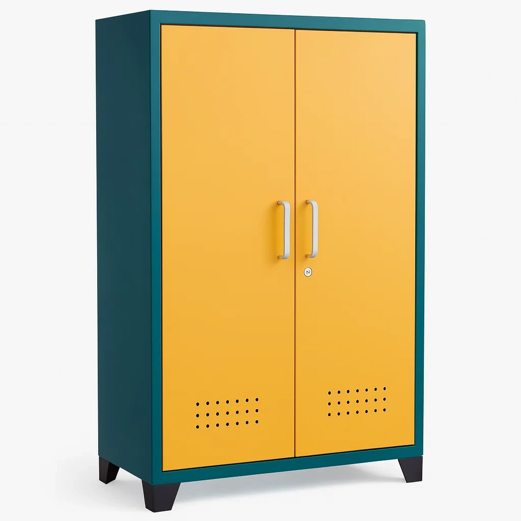 Armadio da garage metallico giallo e blu con serratura