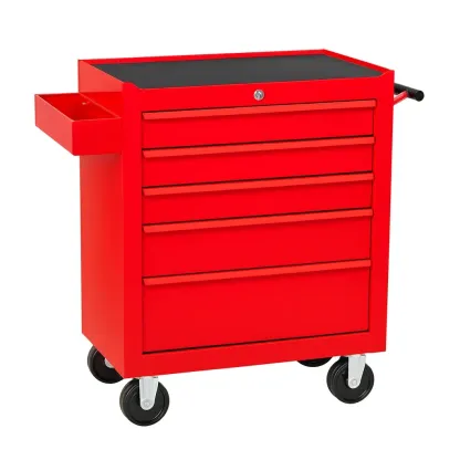 Carrello portautensili da officina in metallo con 5 cassetti e rotelle rosse