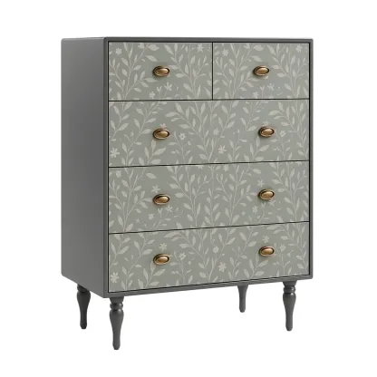 Cassettiera in Legno con 5 Cassetti Motivo Floreale Grigio