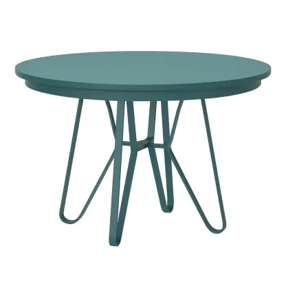 Tavolo da pranzo rotondo in metallo verniciato verde, diametro 100 cm