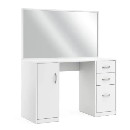 Toeletta da trucco con specchio in legno MDF bianco con cassetti e sportello